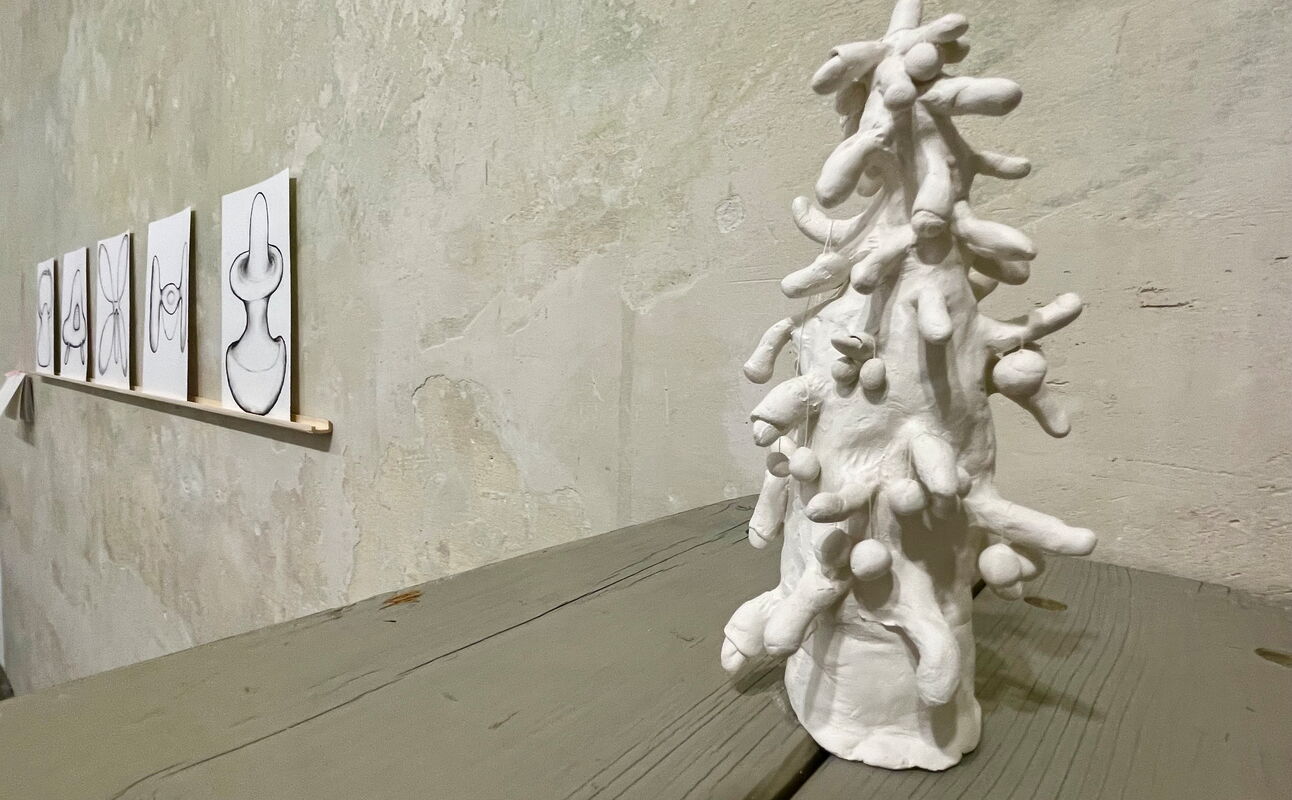 Von mir ist die Kleinplastik "Penisbaum" aus Ton (2014) sowie eine Serie von Kohlezeichnungen (2017) und die dazu gehörende Publikation "VIP Vacation" von 2026 zu sehen.