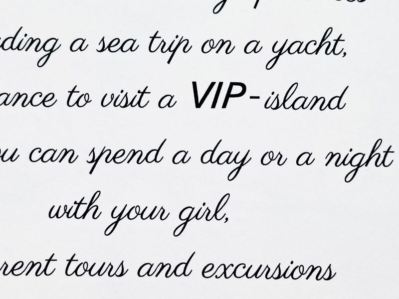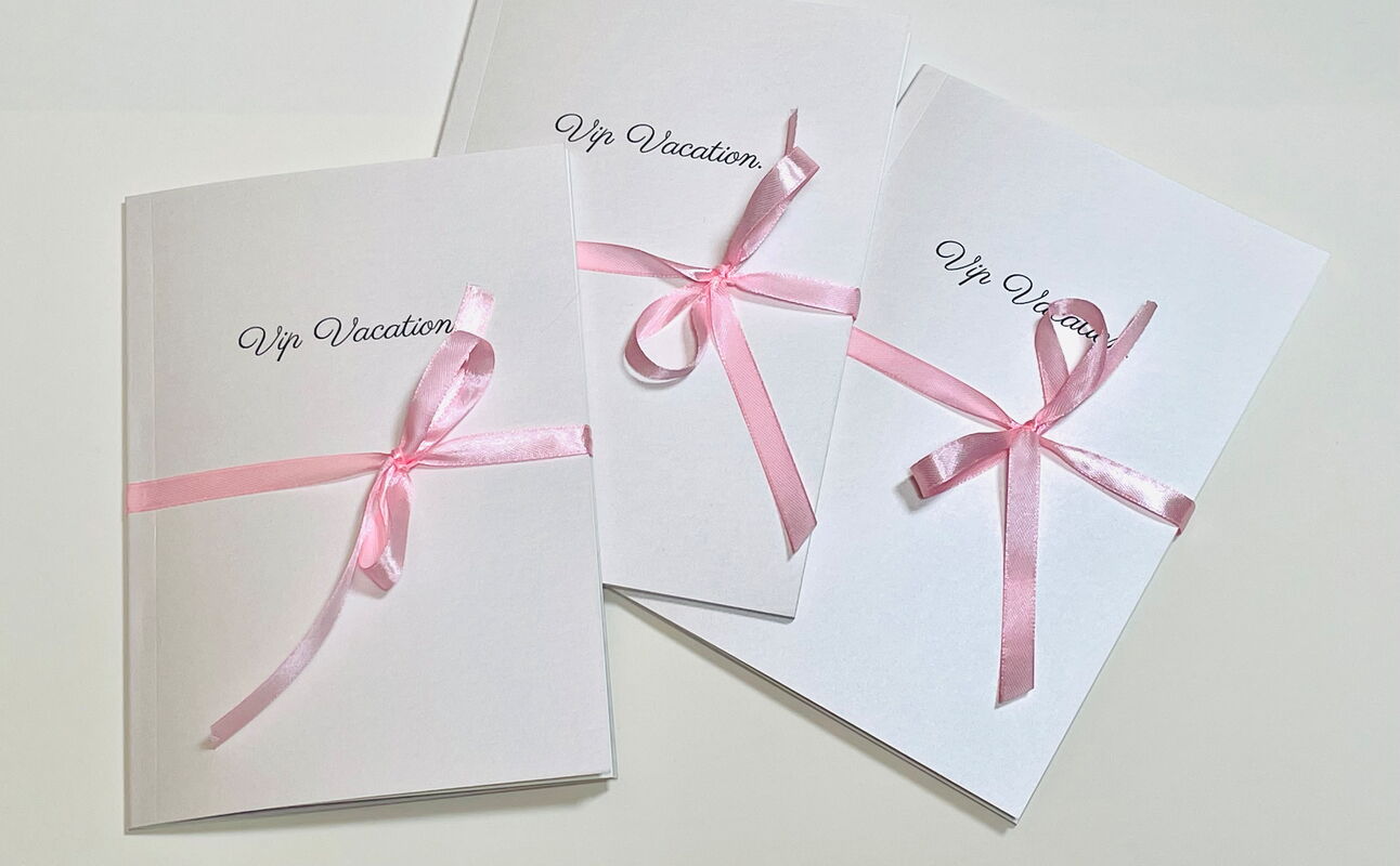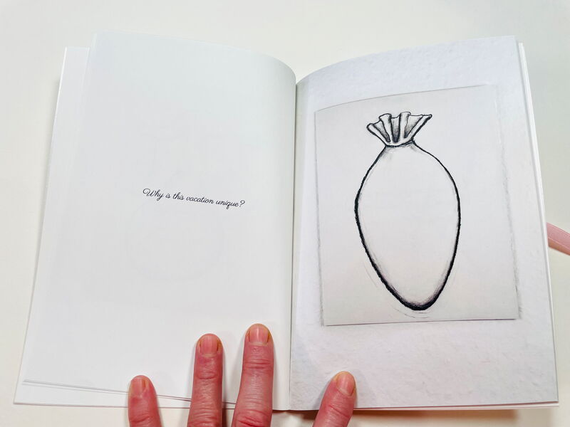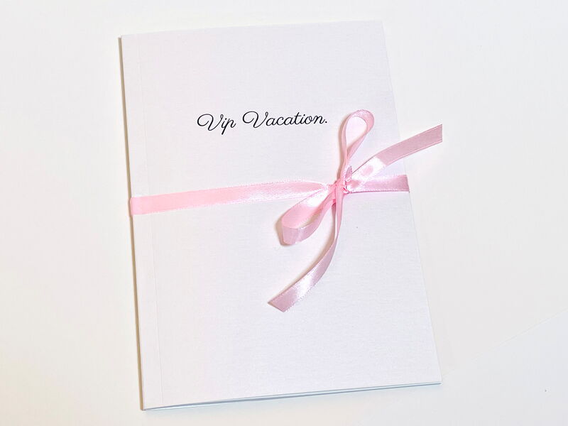 "VIP Vacation" ist 15 x 21 cm groß, hat 28 Seiten, Werkdruckpapier, Umschlag aus Perlmuttkarton.