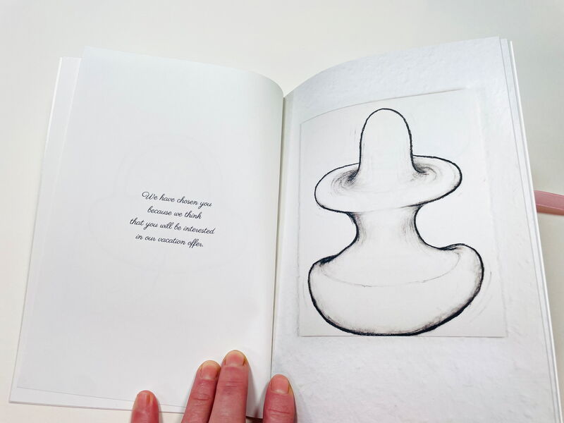Die Publikation "VIP Vacation" beruht auf einer (wie ich dachte, kuriosen) Spam-Email, die ich 2008 erhalten und aufgehoben hatte. 2017 folgten die Kohlezeichnungen die den Text begleiten. Nun, 18 Jahre später, kommt alles zusammen.